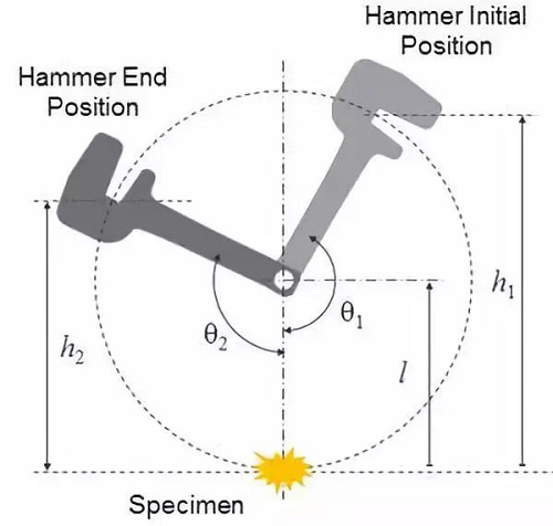 制備有一定形狀和尺寸的金屬試樣,使其具有U形缺口或V形缺口,在夏比沖擊試驗(yàn)機(jī)上處于簡支梁狀態(tài),以試驗(yàn)機(jī)舉起的擺錘作一次沖擊,使試樣沿缺口沖斷,用折斷時擺錘重新升起高度差計(jì)算試樣的吸收功,即為Aku和Akv。