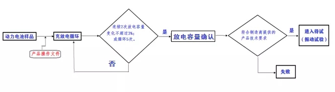 在振動(dòng)試驗(yàn)前,電池包或系統(tǒng)樣品需要先進(jìn)行預(yù)處理循環(huán),以確保在振動(dòng)試驗(yàn)時(shí)樣品的性能處于激活或穩(wěn)定的狀態(tài),在此提出,預(yù)處理失敗(如電池容量達(dá)不到要求)的樣品是不能做振動(dòng)試驗(yàn)的,作為不合格樣品返還電池制造商。