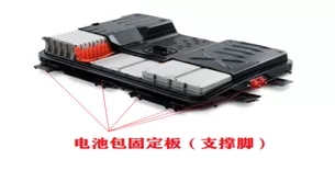 電池包固定板(外殼支撐腳)是電池樣品的振動(dòng)應(yīng)力傳輸路徑的最先導(dǎo)入點(diǎn),試驗(yàn)樣品的與振動(dòng)臺(tái)面耦合安裝的固定位置和固定點(diǎn)數(shù)必須符合裝車(chē)狀況,或試驗(yàn)樣品的與夾具耦合安裝的固定位置和固定點(diǎn)數(shù)必須符合裝車(chē)狀況。